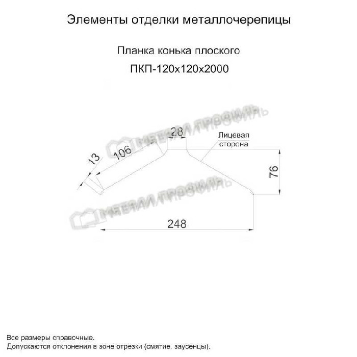 Планка конька плоского Металл Профиль