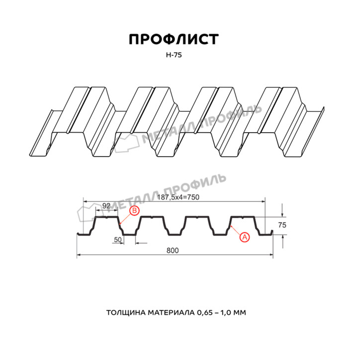Профлист Металл Профиль Н-75 0,9 Цинк Бесцветный Показать информацию