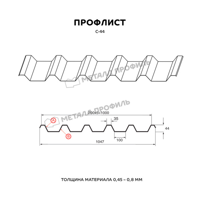 Профлист Металл-Профиль С-44 Полиэстер 0,45 RAL 7024 Серый графит | A Показать информацию