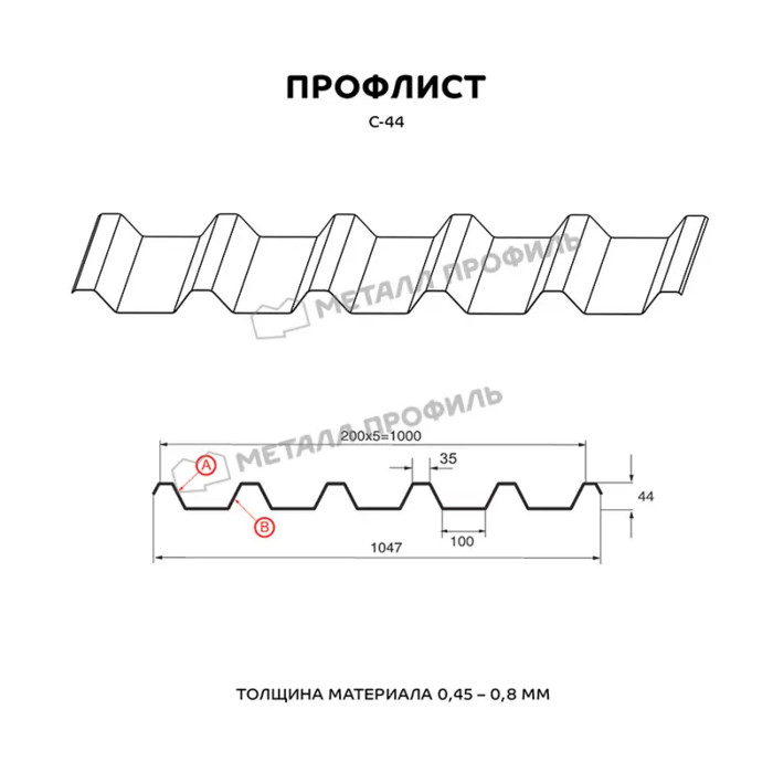 Профлист Металл Профиль С-44 0,45 Цинк Бесцветный Показать информацию